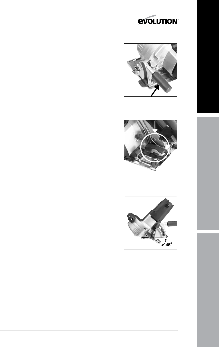 • Loosenthebevellockingscrewfoundatthefrontofthesaw.